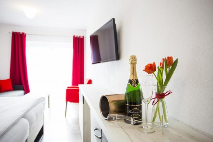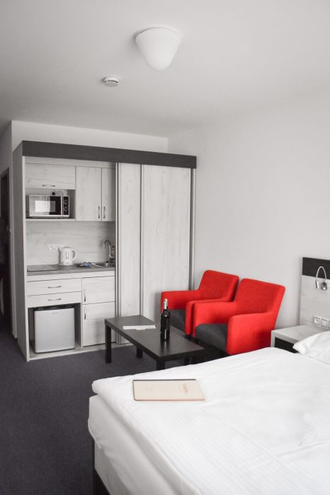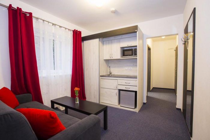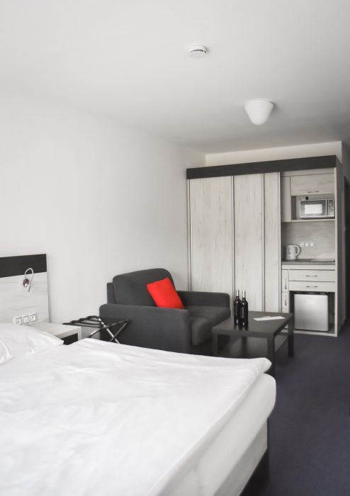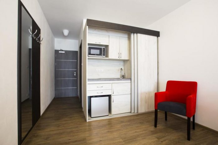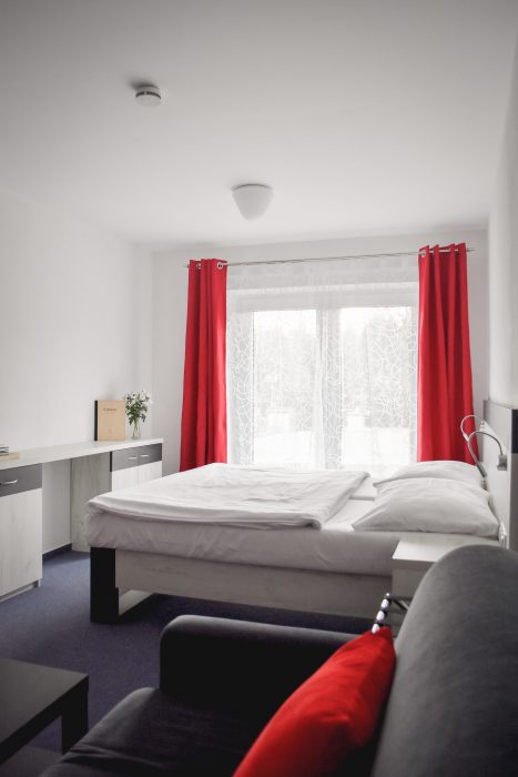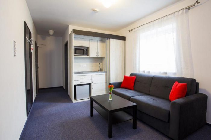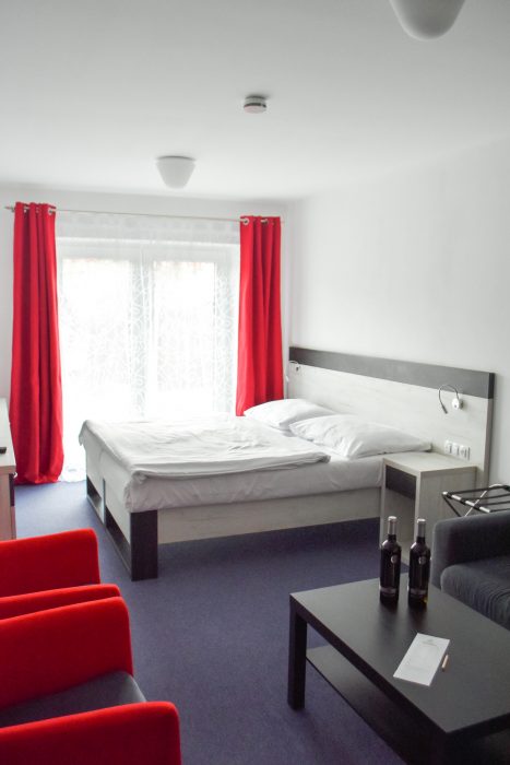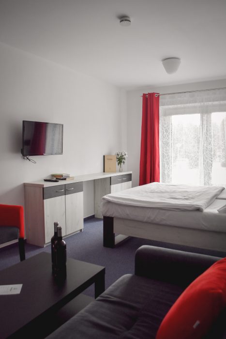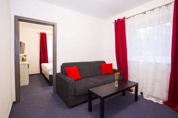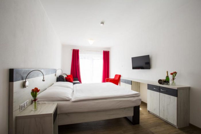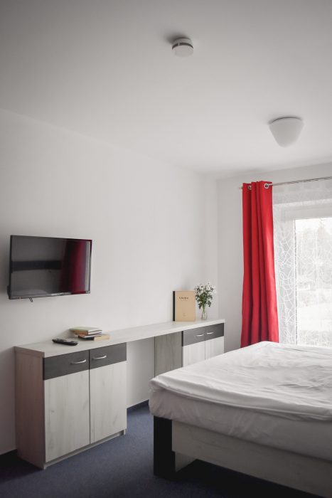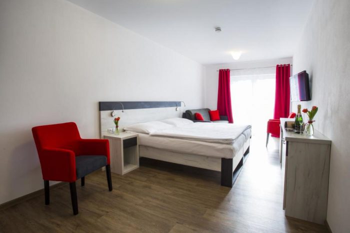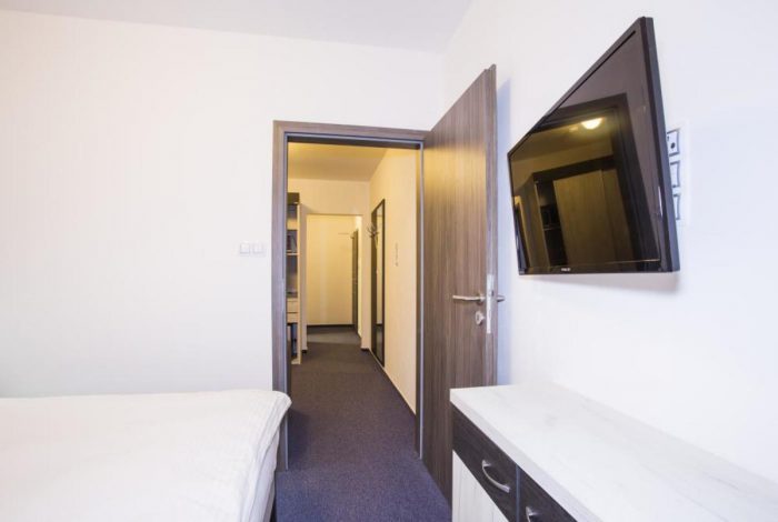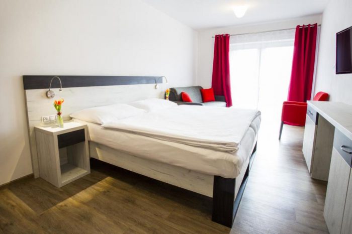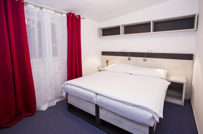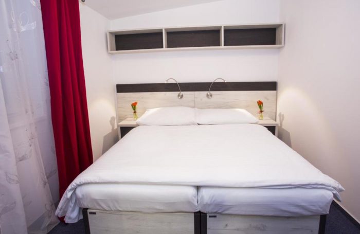 Eine Unterkunft im neu renovierten Hotel mit 1 bis 4-Bett-Zimmern mit der Kapazität bis zu 60 Betten. Die Zimmerausstattung: TV, Bad mit Dusche, Küche und Toilette.
