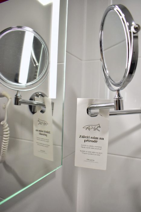 Koupelna se sprchovým koutem, WC a audiosystémem